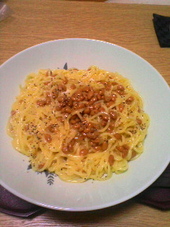 ついについに試してしまった「納豆カルボナーラ」♪